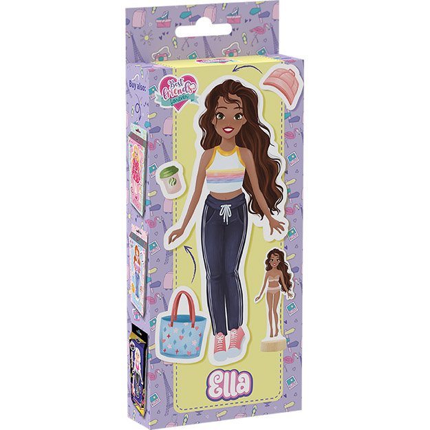 Balení obsahuje oblékací postavičku, 3 archy magnetických částí oblečení, bot a doplňků a dřevěný podstavec.