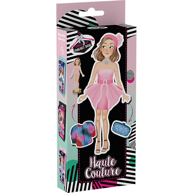 Balení obsahuje oblékací postavičku, 3 archy magnetických částí oblečení, bot a doplňků a dřevěný podstavec.